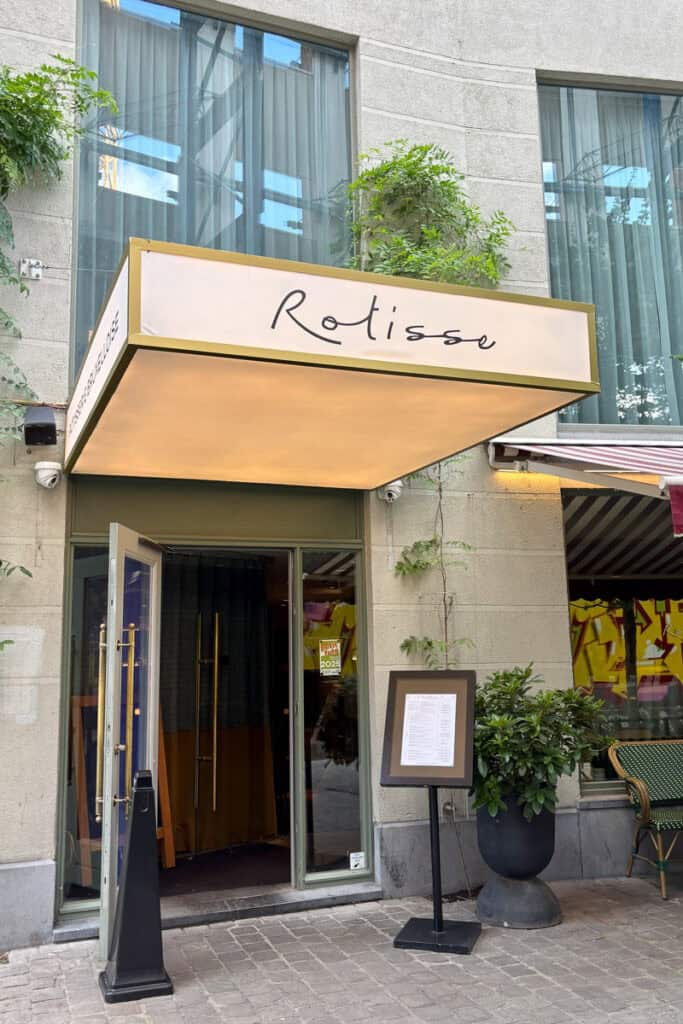 Rotisse is a restaurant in a Marriott Bonvoy near the city center of Brussels. (You do not have to be staying at the hotel to eat here.)