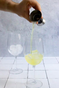 Add ice to wine glass. Add limoncello and Prosecco to glass. Top with sparkling water.